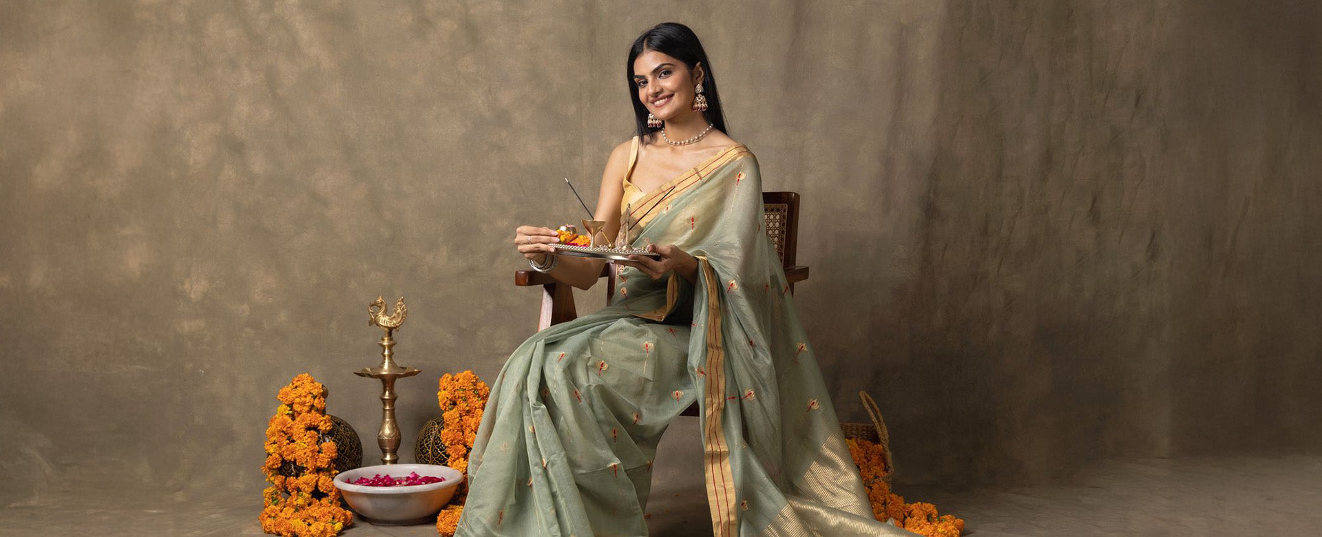 We are committed to using only natural fibres, pure silks in all their beautiful forms like georgette, organza, and silk-cotton blends, ensuring comfort, sustainability, and timeless luxury.