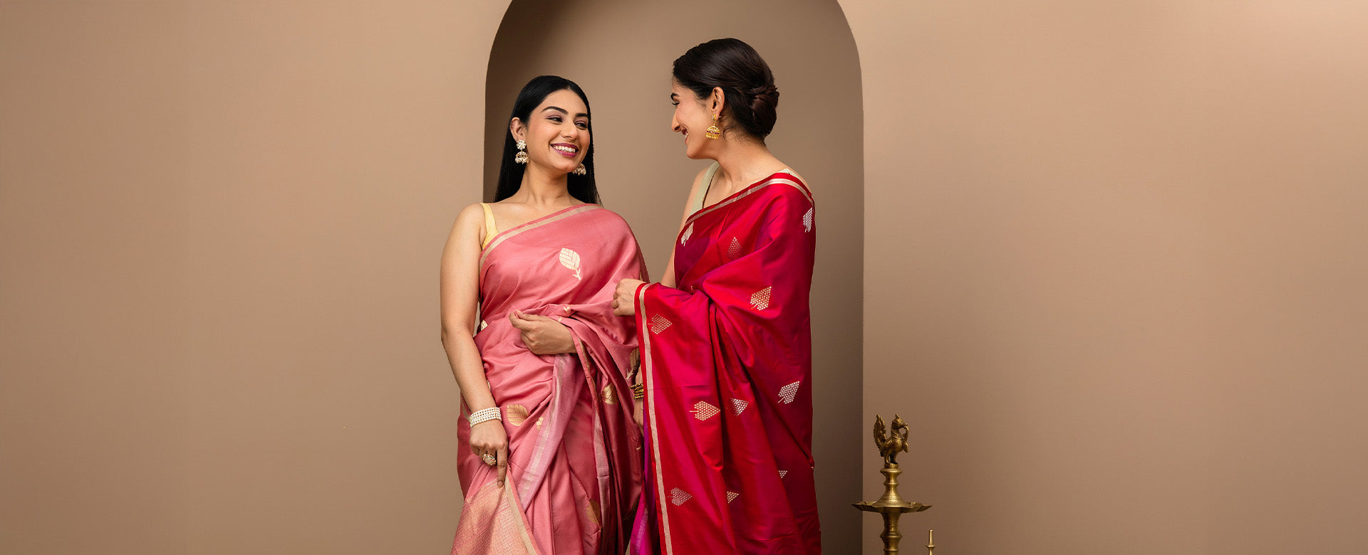 From the ancient city of Kashi, Banarasi weaving reflects centuries of regal artistry and cultural richness. Known for its luxurious silks and intricate motifs, it stands as a symbol of India’s heritage. At Smira, we reimagine these timeless designs in fresh colors and detailing, carrying forward a legacy of elegance and craftsmanship.